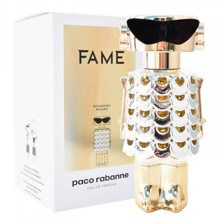 Fame by Paco Rabanne یک رایحه گلی وودی مشک زنانه است. این یک عطر جدید است. شهرت در سال ۲۰۲۲ راه اندازی شد. شهرت توسط دورا باغریچه، ماری سالامگن، آلبرتو موریلاس و فابریس پلگرین ایجاد شد. نت های ابتدایی انبه و ترنج هستند. نت های میانی یاس و الیبانوم هستند. نت های پایه وانیل و چوب صندل هستند.ادو پرفیوم فیم یک طراحی فوق العاده مطلوب و جسورانه را عرضه کرده است .